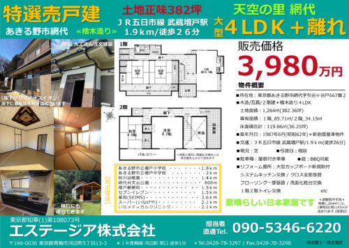 4LDK+離れ/販売価格3,980万円/JR五日市線 武蔵増戸駅 徒歩26分
