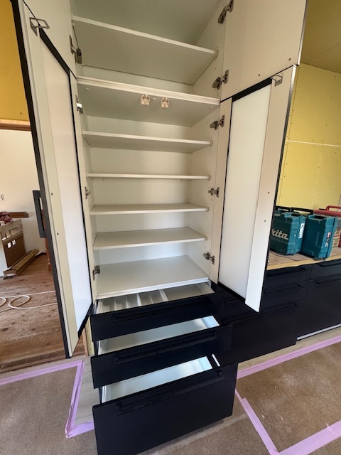| リフォーム箇所 | 大型カップボード新規取付、システムキッチン交換、クロス全面張替、フローリング一部張替、洗面化粧台交換、1階2階トイレ交換、etc |